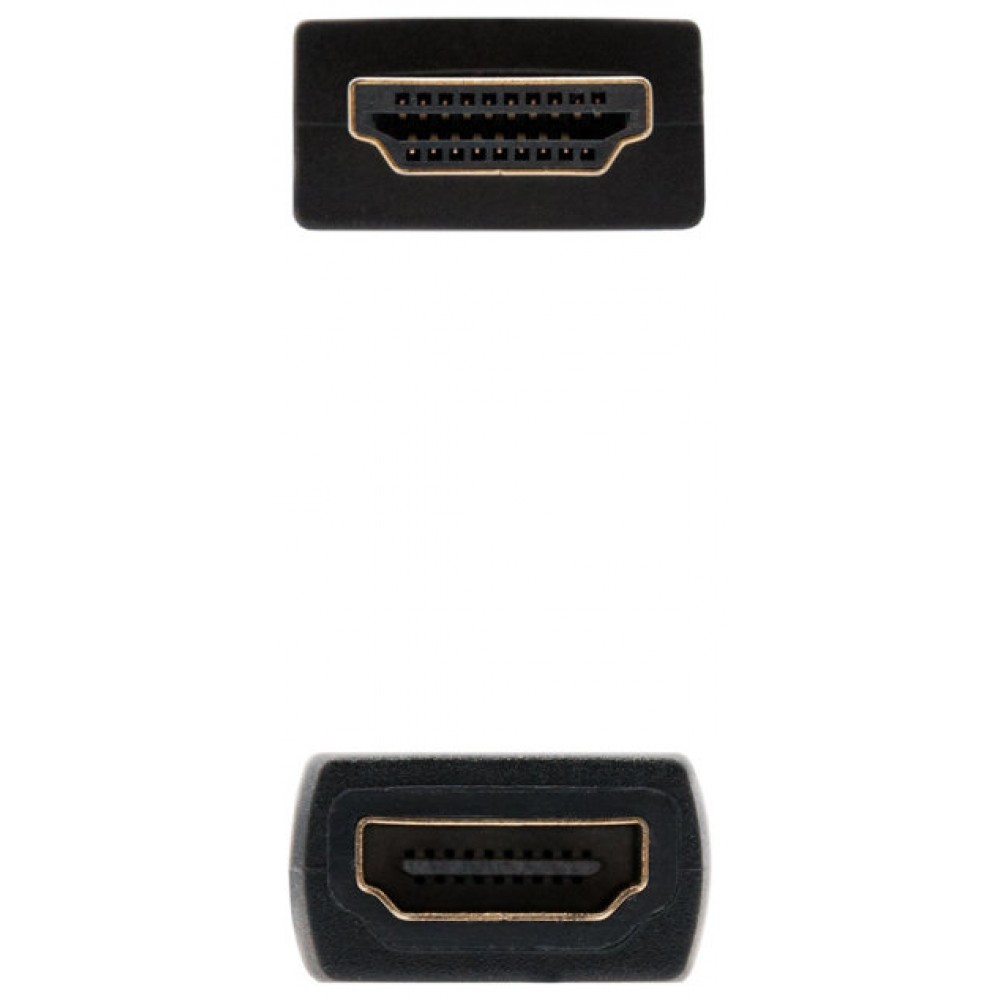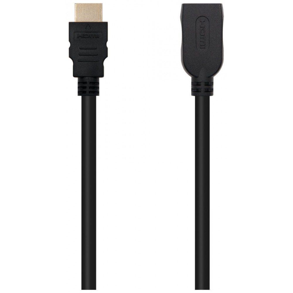 Especificaciones:. . Cable HDMI V2.0 con conector tipo A macho en un extremo y hembra en el otro.. Conectores de alta calidad blindados en oro.. Velocidad hasta 18 Gbps.. Múltiple apantallamiento para la máximo reducción de posibles interferencias.. Fabricado con conductores de cobre de alta calidad.. Retrocompatible con las especificaciones HDMI anteriores.. Soporte resoluciones de video de hasta 4Kx2K@60Hz.. Compatible con HDR (High Dynamic Range).. Soporta funcionalidad de canal de retorno de audio.. Permite 3D.. Compatible con hasta 32 canales de audio digital no comprimido.. Longitud: 1 m. Color: Negro. Normativas: RoHS. Test de Funcionamiento: 100% testado
