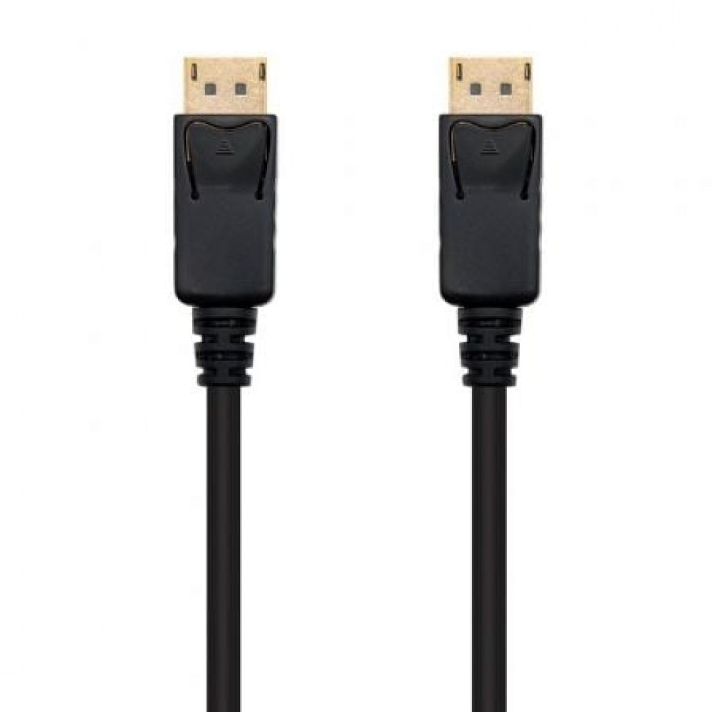 Especificaciones:. . Compatible con DisplayPort versión 1.0, 1.1 y 1.2. Soporta resoluciones de video de hasta 4Kx2K 60Hz. Conectores de alta calidad con los pines blindados en oro de 24K. Múltiple apantallamiento formado por 128 hilos trenzados y lámina de aluminio para la máxima reducción de posibles interferencias. Fabricado con conductores de cobre (cobre OFC-Oxygen Free Copper- 99,99%) de alta calidad que garantiza la máxima calidad de transmisión.. Doble ancho de banda para visualizar contenido en 3D (hasta 21,6 Gbits/s.).. Posibilidad de conectar más monitores a través de un único conector.. Formatos de alta definición de audio (como Dolby MAT, DTS HD, BD, etc.).. Sincronización entre el audio y el vídeo, múltiples canales de audio, y sincronización entre varios dispositivos de audio que utilicen el servicio Global Time Code.. La velocidad máxima que puede transferir un canal es de 5,4 Gbits/s.. Posibilidad de conectar hasta cuatro monitores con una resolución de 1920 x 1200 o dos en 2560 x 1600.. Soporta 128-bit AES Protección de Contenido de Displayport (DPCP). Es un cable perfecto que proporciona una imagen perfecta.. Longitud: 1.5 m. Color: Negro. Normativas: RoHS. Test de Funcionamiento: 100% testado