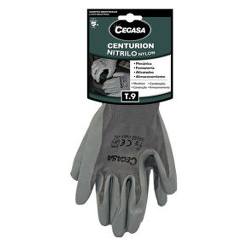 GUANTES DE TRABAJO CENTURION NITRILO/NYLON GRIS T9-GRANDE L CEGASA 327100 (Espera 4 dias)