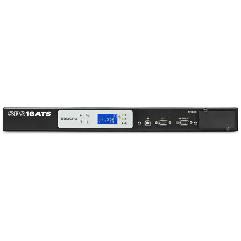 La serie SPS ATS de Salicru es un conmutador automático entre dos líneas de alimentación monofásica AC que, partiendo de dos líneas de energía de corriente senoidal, suministra tensión de salida a la/s carga/s. La conmutación puede ser automática o manual. El display LCD junto a los LEDs de estado informan en todo momento del estado del equipo, modo de trabajo y de los valores de las principales medidas. Dispone de amplias posibilidades de comunicación mediante los interfaces USB, RS-232 y contactos libres de potencial incorporados, o la inclusión -opcional- en una plataforma SNMP. Asimismo, mediante el software de parametrización disponible se pueden programar parámetros como retardos, nivel de sobrecarga, márgenes de tensión y frecuencia, sensibilidad de línea, programación de los contactos libres de potencial, etc.