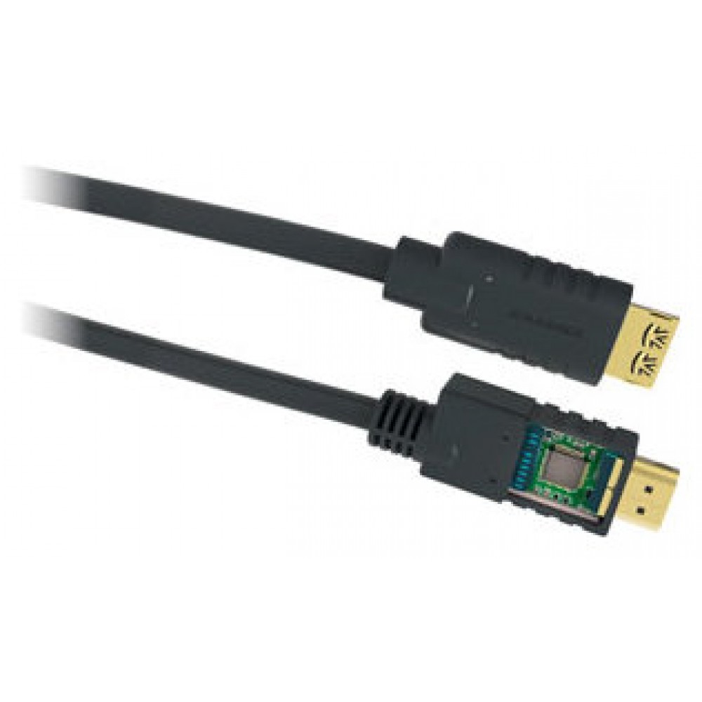 CA&minusHM active HDMI copper cable provides a perfect cable solution for delivering HDMI signals over long distances: 18Gbps up to 20m (66ft), 10.2 Gbps up to 25m (82ft) and 6.75Gbps up to 30m (98ft). The innovative technology utilized in the cable&rsquos connector features superior equalizing and signal compensation to meet the most demanding challenges in Pro AV installations.<br>This unique solution simplifies long distance installations by using a true plug & play cable that draws power from the HDMI source. There is no need for an external power source. <br>CA&minusHM features the Kramer exclusive K&minusLock HDMI connector, that prevents cables in your installation from unintentionally disconnecting, eliminating cable&minusrelated service calls. Additionally, an LED on the connector indicates when the signal is transmitted successfully.