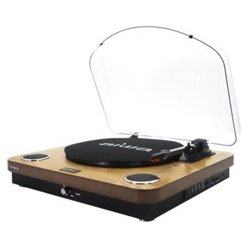 Aiwa GBTUR-120WD. Color del producto: Negro, Madera, Velocidad de tornamesa: 33,45,78 RPM. Versión de Bluetooth: 2.1+EDR, alcance Bluetooth: 10 m. Potencia estimada RMS: 10 W, Rango de frecuencia: 100 - 20000 Hz. Tipo de fuente de alimentación: Corriente alterna, Voltaje de entrada de adaptador AC: 100 - 240 V, Frecuencia de adaptador AC: 50/60 Hz. Peso: 4,09 kg