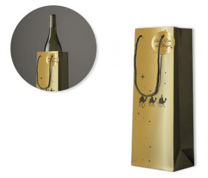 BOLSA BOTELLA DORADA REYES MAGOS (12X33,7X10 CM) BISMARK 333674