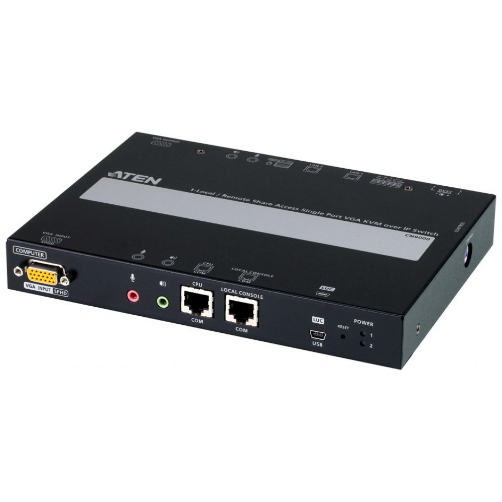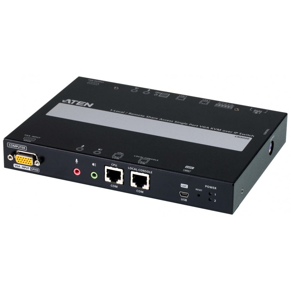 El switch KVM a través de IP VGA CN9000 permite el acceso remoto y el control del vídeo, el audio y el contenido multimedia virtual de un PC o una estación de trabajo, incluyendo una alta resolución de vídeo VGA de hasta 1920 x 1200 a 60 Hz tanto en consolas locales como en consolas remotas. Al incluir compatibilidad con USB y PS/2 (teclado y ratón), el CN9000 no solo es compatible con las estaciones de trabajo modernas sino también con sistemas heredados y servidores de una generación anterior.1x unidad de control KVM por IP VGA CN9000 1x cable para conexión KVM (VGA, PS/2, USB) 1x cable USB (USB tipo A a mini-B) 1x adaptador de corriente 1x bloque de terminales de control 1x kit de montaje 1x juego de patas 1x manual de instrucciones