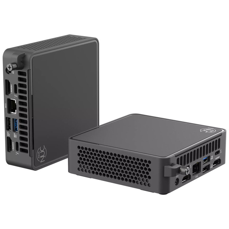 ASUS NUC 15 Pro . Tipo de producto: Mini PC barebone. tipos de memoria compatibles: DDR5-SDRAM, Número de ranuras de memoria: 2, Memoria interna máxima: 96 GB. Tipos de unidades de almacenamiento admitidas: SSD, Interfaz de unidad de almacenamiento: M.2, Capacidad máxima de almacenaje: 8 TB. Ethernet LAN (RJ-45) cantidad de puertos: 1. Wi-Fi estándares: Wi-Fi 7 (802.11be), Versión de Bluetooth: 5.4. Tipo de enfriamiento: Activo. Fuente de alimentación: 120 W