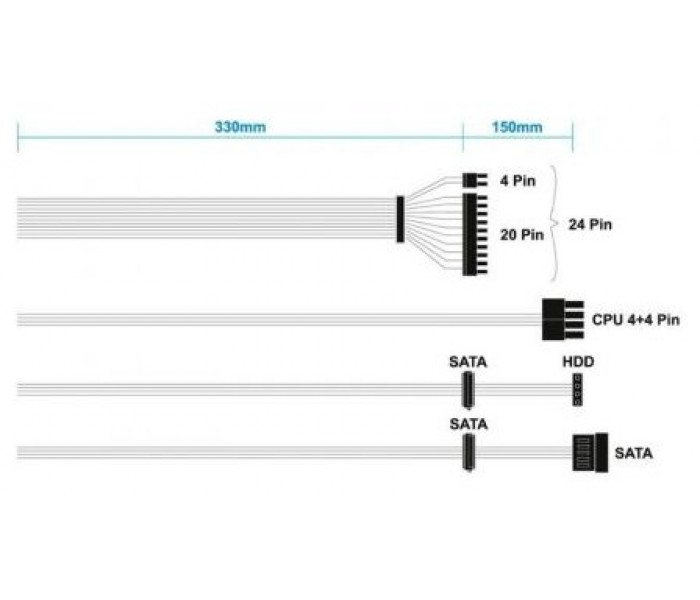 • 1 conector SATA + 1 conector Molex 330+150mm