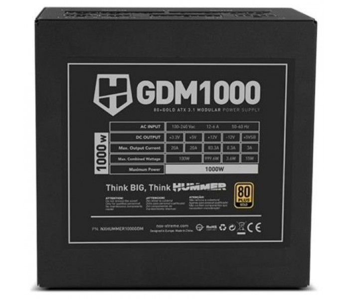 Diseñadas para garantizar una eficiencia de hasta el 90%, Hummer GDM, es la nueva serie de fuentes modulares con certificado 80 PLUS Gold de Nox. Estas fuentes de alimentación Nox garantizan una potencia constante y el rendimiento superior que exigen las configuraciones más exigentes.