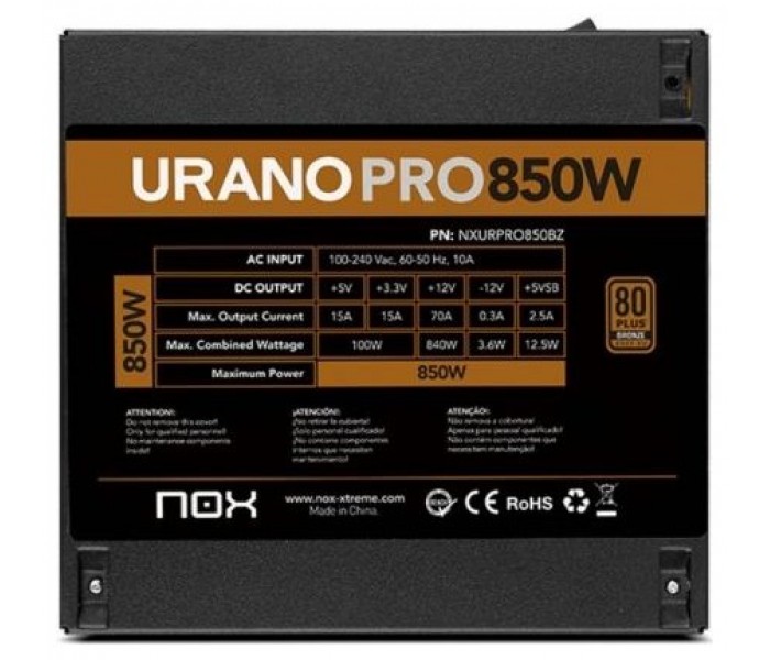 FUENTE ALIMENTACION 850W NOX URANO PRO PFC-ACTIVO (Espera 4 dias)