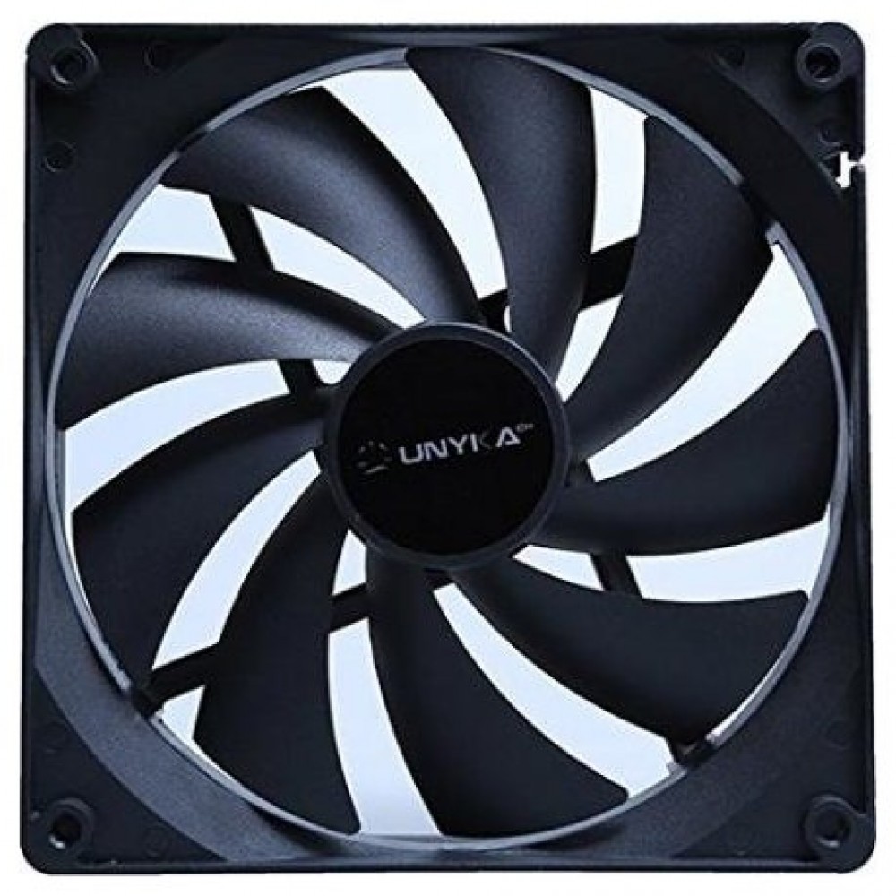 UNYKAch 140 mm. Tipo: Ventilador, Diámetro de ventilador: 14 cm, Velocidad de rotación (máx.): 1000 RPM, Nivel de ruido (alta velocidad): 19 dB. Voltaje: 12 V. Ancho: 140 mm, Profundidad: 25 mm, Altura: 140 mm. Color del producto: Negro