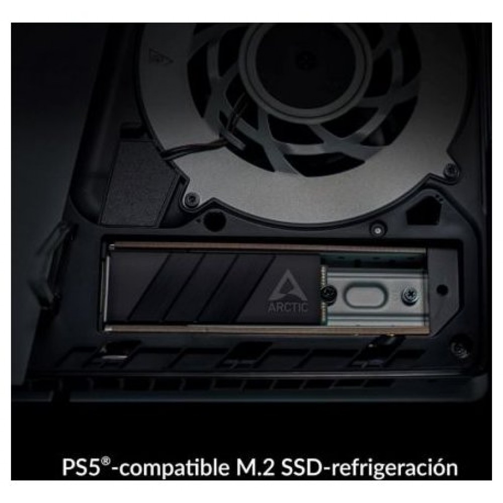 Es posible ampliar la capacidad de almacenamiento de la PlayStation 5 instalando un SSD M.2 rápido. Sony indica expresamente en las instrucciones que este medio de almacenamiento M.2 requiere un disipador de calor. El ARCTIC M2 Pro cumple con los requisitos especificados y, por lo tanto, es compatible con la PS5 y la PS5 Slim.