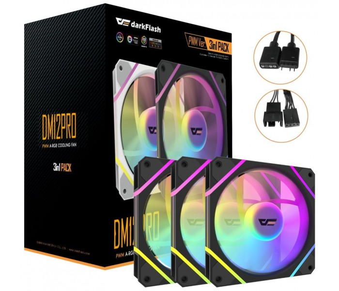 KIT 3 VENTILADORES AUXILIAR DM-12 120 PRO A-RGB NEGRO DARKFLASH (Espera 4 dias)