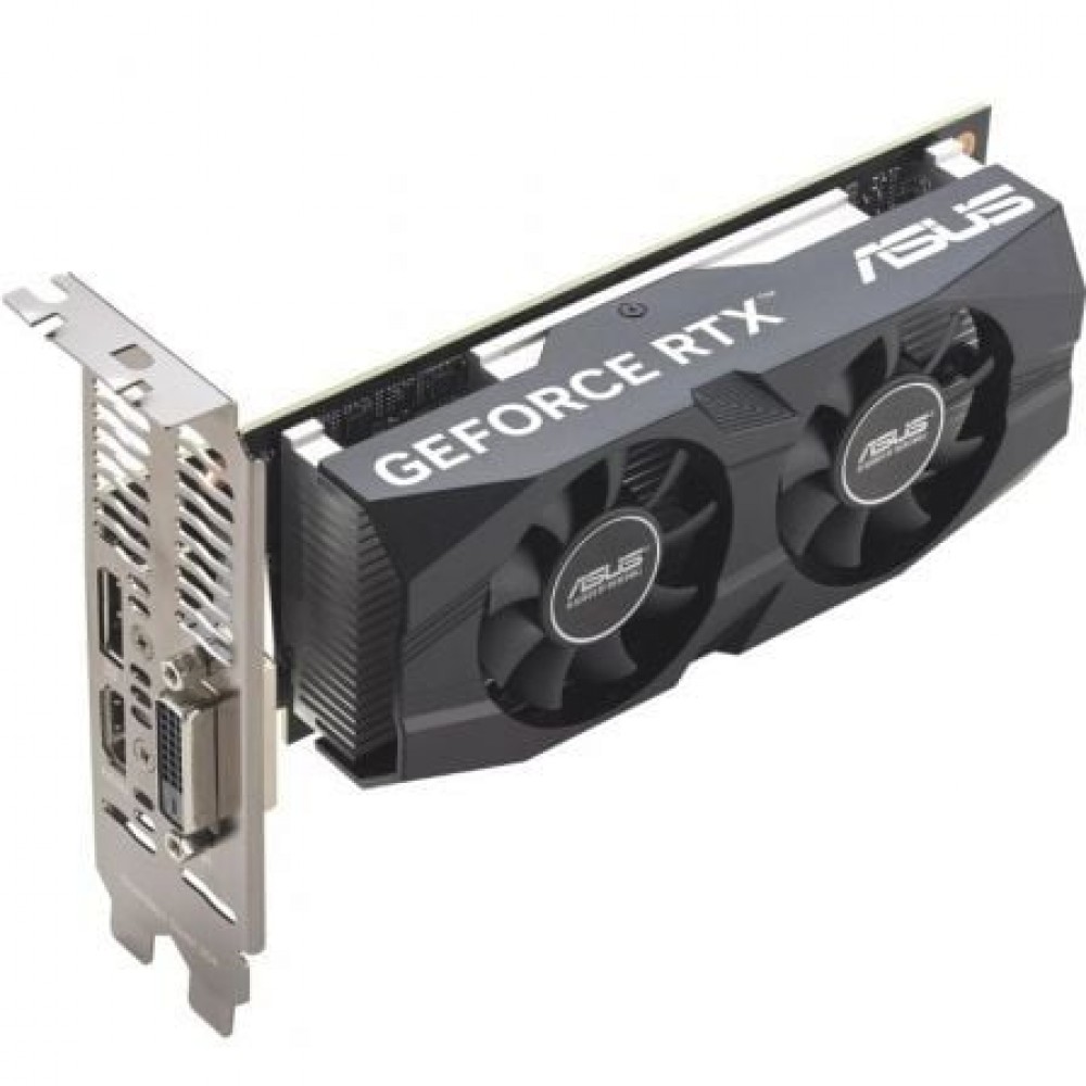 ASUS GeForce RTX 3050 LP BRK OC Edition. Familia de procesadores de gráficos: NVIDIA, Procesador gráfico: GeForce RTX 3050. Capacidad memoria de adaptador gráfico: 6 GB, Tipo de memoria de adaptador gráfico: GDDR6, Ancho de datos: 96 bit. Máxima resolución: 7680 x 4320 Pixeles. Versión OpenGL: 4.6. Tipo de interfaz: PCI Express 4.0. Tipo de enfriamiento: Activo, Número de ventiladores: 2 Ventilador(es)