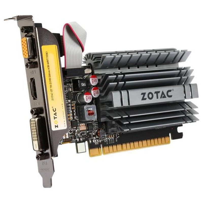 VGA ZOTAC GT 730 4GB DDR3 128bit, Reloj 902 / 1600MHz DVI + HDMI + VGA 2 x LP brackets, ZT-71115-20L