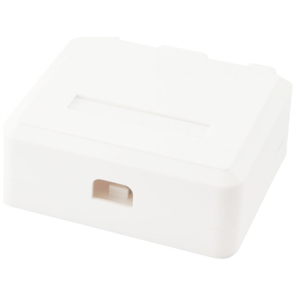 La caja Keystone montada en superficie equip® con 2 conectores Keystone admite dos conexiones Ethernet. Puede instalar la caja Keystone con conectores Keystone Cat.5e, Cat.6 o Cat.6A. Este producto incluye con una pieza de cinta adhesiva que le permite instalar la caja montada fácilmente, sin necesidad de herramientas.