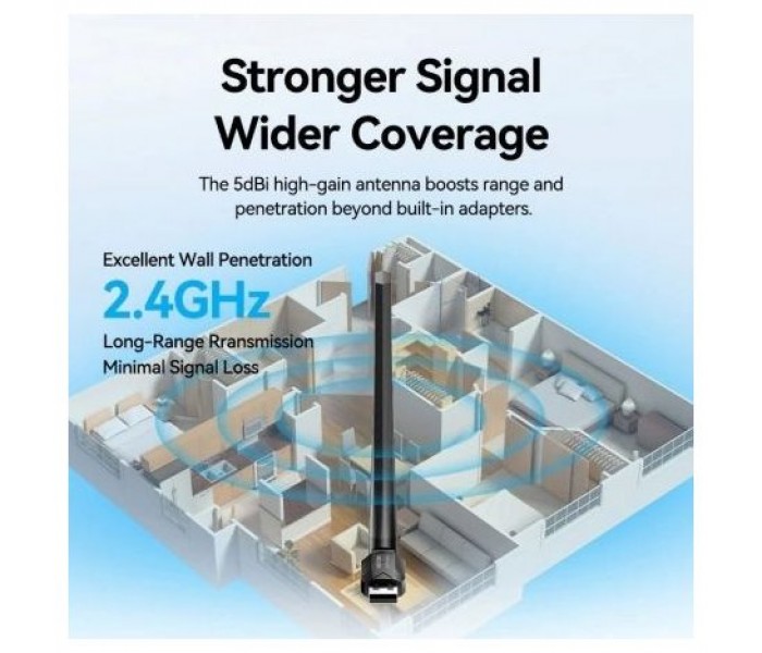 Vention Adaptador USB Wi-Fi AX300 de banda única con antena de alta ganancia, color negro