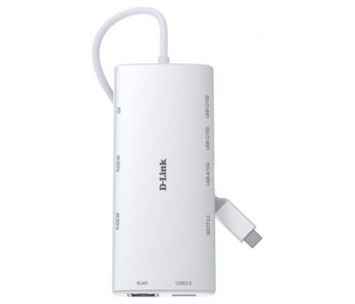 Docking USB Tipo-C D-Link DUP-A01/ 1xUSB/ 2xUSB Tipo-C/ 2xHDMI 4K/ 1xRJ45/ 1xLector de Tarjetas/ 1xUSB Tipo-C PD/ Blanco