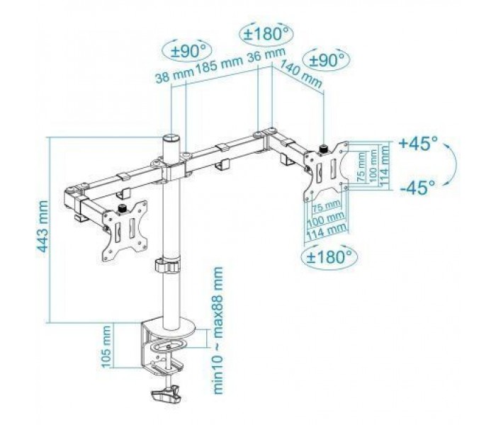 Soporte de Mesa para 2 Monitores TooQ DB1232TN-B/ Giratorio/ Inclinable/ hasta 8kg