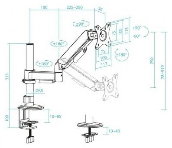 - Peso soportado de pantalla: Mínimo 2 kg. Máximo 9 kg