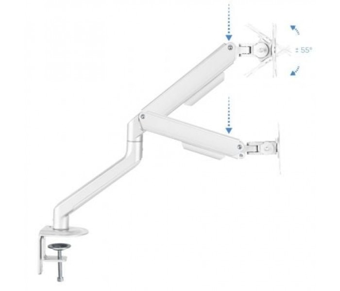 Agrega flexibilidad y ergonomía a tu lugar de trabajo.. Mueve sin esfuerzo el soporte con el mecanismo asistido por muelles. Adapta el monitor a la postura más cómoda que necesites para conservar una buena higiene postural. Disponible en dos colores: gris espacial y blanco. . . Especificaciones:. . Pantallas soportadas: 17""-32"". Compatible con VESA: 75x75 y 100x100. Peso máximo soportado de pantalla: 2-9 kg. Brazo regulable con mecanismo asistido por muelles. ángulo de inclinación: +55º/-55º. ángulo de giro: +90º/-90º. ángulo de rotación: +180º/-180º. Altura ajustable hasta 428 mm. Extensión máxima del brazo: 516 mm. Instalación mediante abrazadera o tornillo pasante. Sistema de organización de cables. Compatible con pantallas curvas. Color: Blanco. Peso neto: 2,2 kg. Peso bruto: 2,74 kg. Medidas del embalaje: 435x155x95 mm