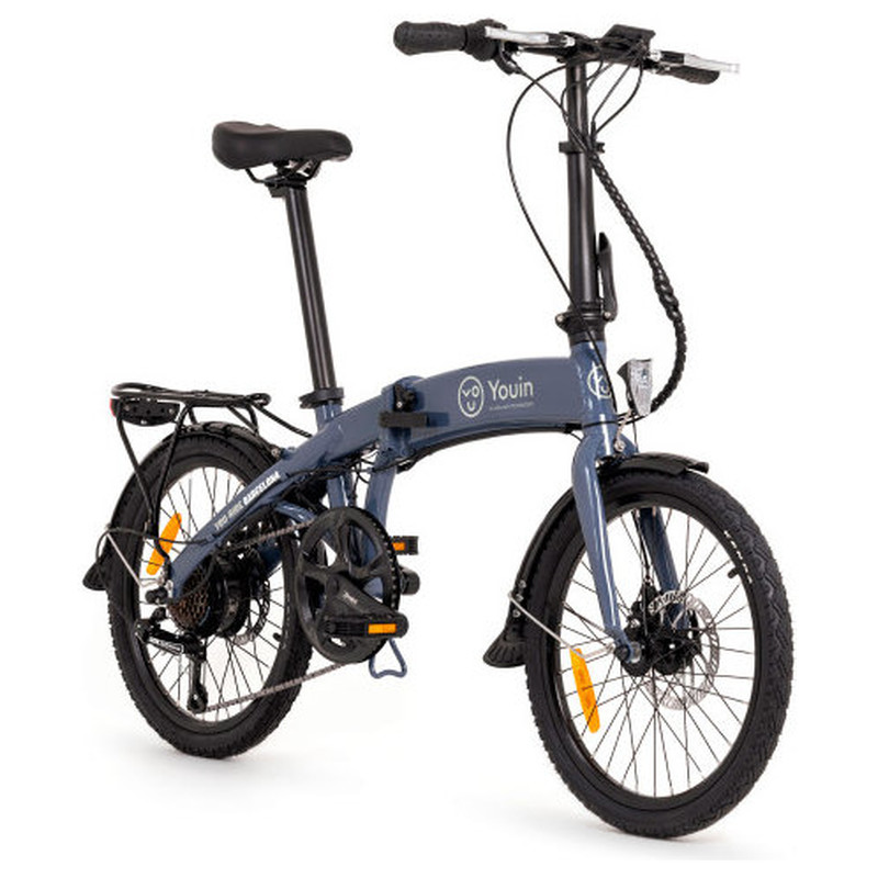 YOUIN YOURIDE BARCELONA URBANA - 36V 10Ah - BATERIA INTEGRADA /EXTRAIBLE. Potencia: 250W.Autonomía: hasta 45 km, Batería extraíble de 36V/9.6Ah, integrada en chasis, Carga completa: 5-6h,Rueda de 20 pulgadas Cambio Shimano de 6 velocidades. Freno delantero y trasero de disco. Velocidad máxima: 25 km/h. Horquilla y guardabarros delantero y trasero de acero. Luz frontal y trasera. Fácilmente plegable .Pantalla con velocímetro y nivel de batería. Peso: 20 Kg. Carga máxima: 120 Kg.