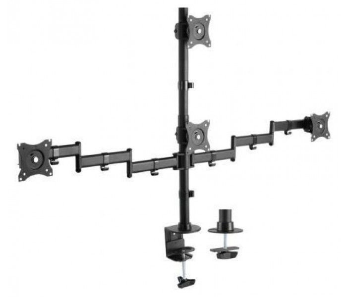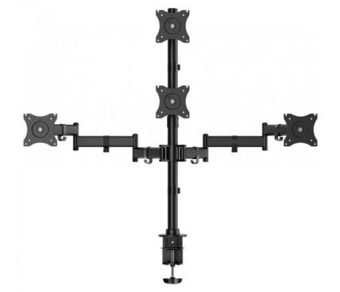 - Soporte de mesa eco giratorio e inclinable para 4 monitores (4 pivotes, 2 brazos) de 13”-27”