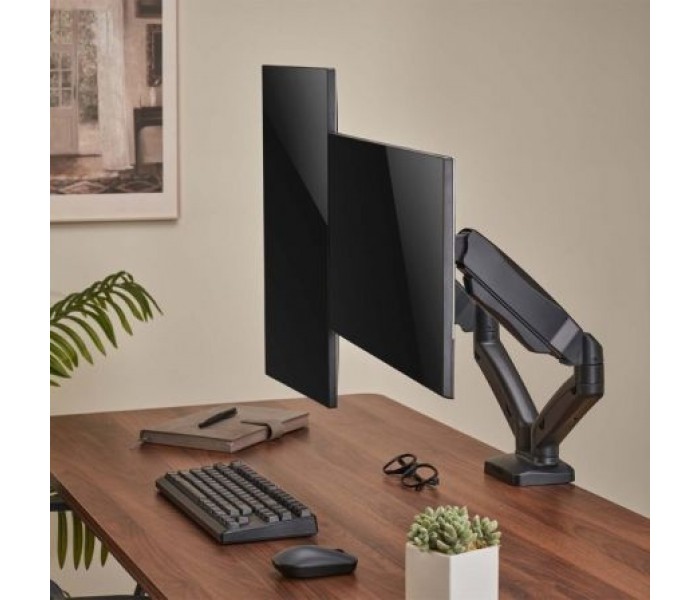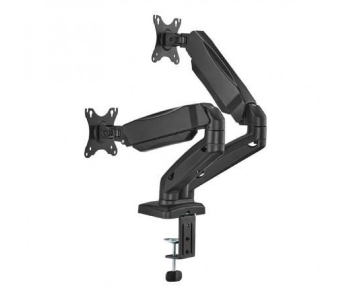 Soporte de mesa profesional contrapeso giratorio e inclinable para monitor/TV (3 pivotes, 2 brazos) de 17”-32” aluminio de alta resistencia y pintado con pintura electrostática para un acabado perfecto.