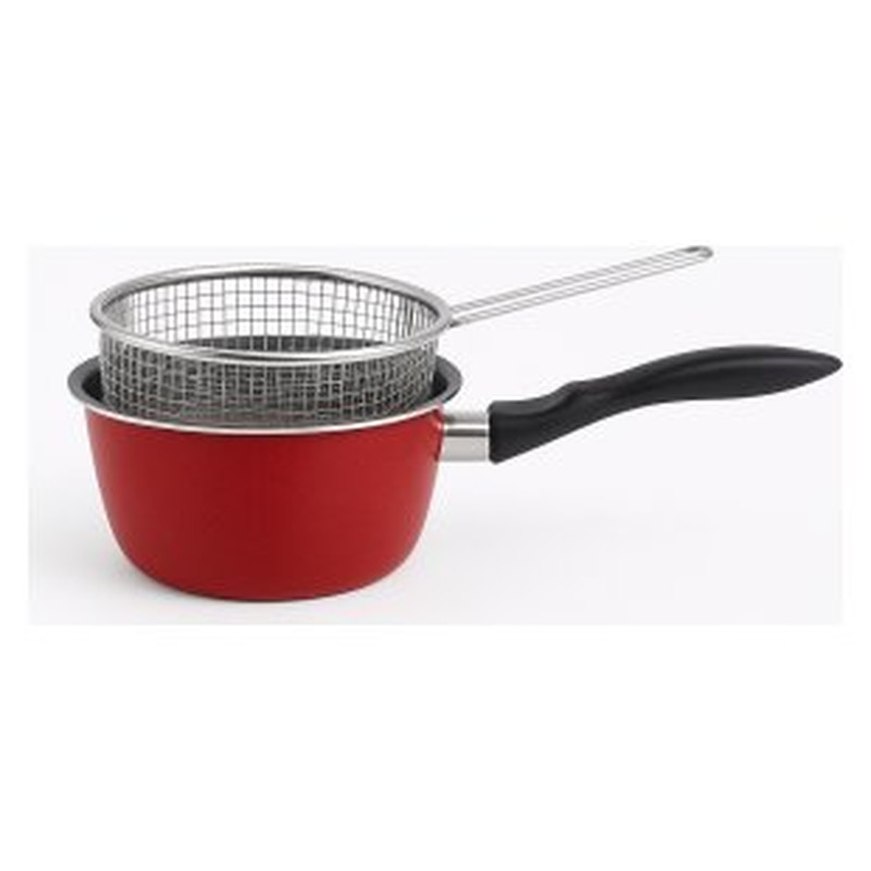 CAZO CON CESTILLO MAGEFESA K2 ROJO 16 ACERO ANTIADHERENTE ACERO INOXIDABLE TODO TIPO COCINAS