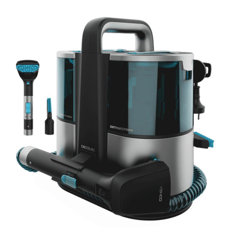 Conga 4000 Carpet&Spot Clean XL. Aspirador de tapicerías con Potencia de 400 W. Dos depósitos, uno de agua limpia y otro de agua sucia. Pulverizador de agua y 12 kpa de succiónPulveriza, limpia y aspira, todo en uno.Aspirador de tapicerías con función 3 en 1: pulveriza, limpia y aspira. Incluye un sistema de pulverización de agua en el cabezal para poder dosificar fácilmente el caudal de agua y adecuar la cantidad de agua al tipo de superficie.Aspirador multiuso para una limpieza total.Permite aspirar a la perfección tanto los sólidos como los líquidos con su aspirador multiusos, para una limpieza total de todas las habitaciones de tu hogar.Limpia cualquier superficie con su gran potencia.Con sus 400 W de potencia serás capaz de eliminar cualquier superficie sin esfuerzo.5 metros de radio de acción para una limpieza cómoda.El gran radio de 5 metros de acción del aspirador permite una limpieza cómoda y sin preocupaciones.Doble depósito para agua limpia y sucia.Contiene un depósito de agua limpia de hasta 1 litro y un depósito de agua sucia de hasta 0,85 litros. Fácil extracción de los depósitos de agua para rellenar y para vaciar con comodidad.Llega a todos los rincones de tu casa.Su manguera de 1,2 metros permite limpiar hasta las zonas más alejadas de tu casa. Además, incluye dos boquillas de aspiración de líquidos y cepillo 2 en 1 que se adapta a cualquier tipo de suciedad. También cuenta con un gancho para un fácil almacenamiento y una asa para un desplazamiento cómodo.Tapicería como nueva sin esfuerzo.Mantén tus tapicerías perfectas limpiándolas en profundidad.