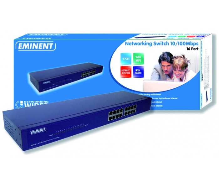 Eminent EM4416 16 Port Networking Switch 10/100Mbps, No administrado, 100Base-TX, 10Base-T, 10/100 Mbps, 0,1 Gbit/s, Azul, 6,2W