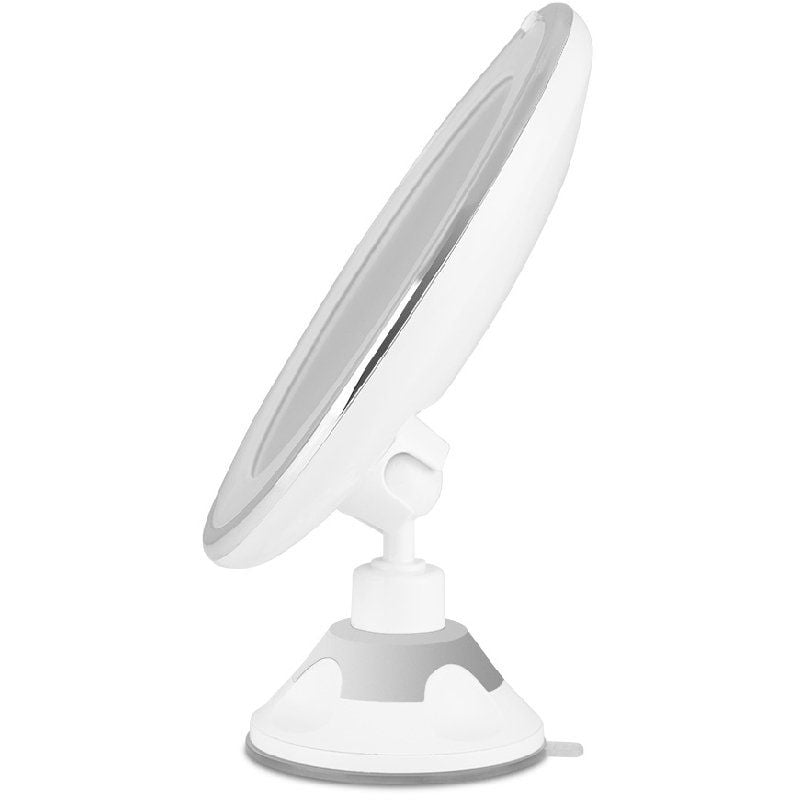 Posee un diámetro de 17 cm y un aumento 10X para apreciar hasta el más mínimo detalle. Su luz LED circular es un plus que ayuda a ver cualquier tipo de imperfección y corregirla inmediatamente. Esta luz blanca se enciende cómodamente con un pequeño botón que se encuentra en el frontal del aparato. La luz del espejo funciona con 3 pilas AAA (no incluidas).