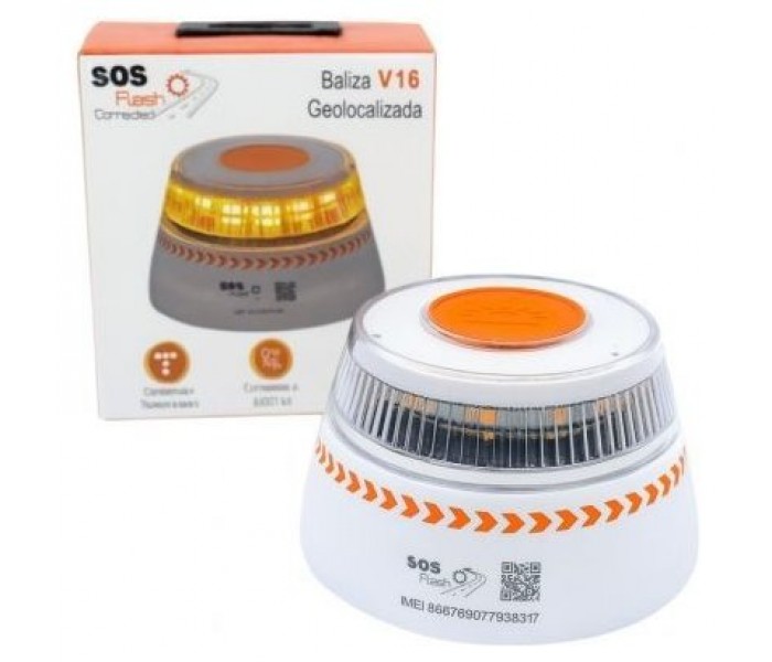 Luz baliza de emergencia para coche SOS Flash V16 Connected IoT BAL/2/ Homologada/ Base Imantada/ Geolocalizable/ Funciona a Pilas