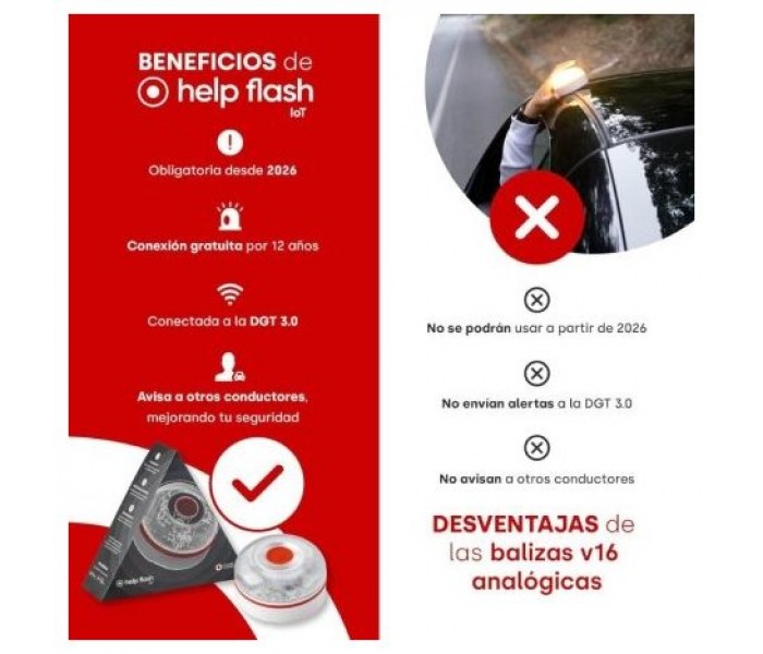 Luz baliza de emergencia para coche Help Flash V16 Connected IoT/ Homologada/ Base Imantada/ Geolocalizable/ Funciona a Pilas