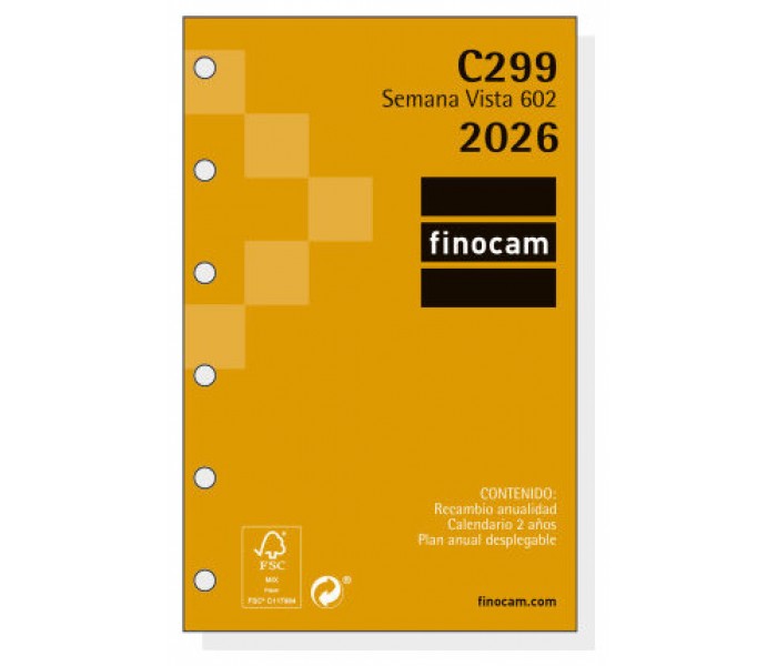 RECAMBIO ANUAL 2026 C299 CLASSIC602 73X114MM SEMANA VISTA HORIZONTAL FINOCAM 201240026 (Espera 4 dias)