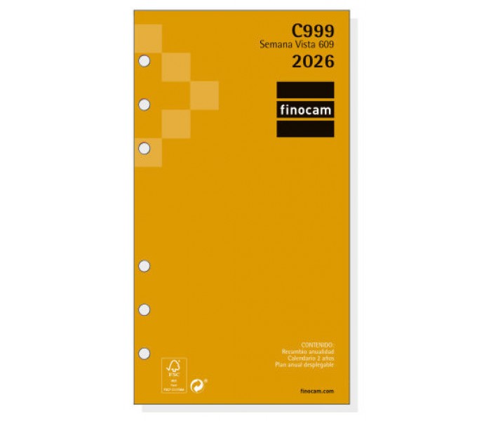 RECAMBIO ANUAL 2026 C999 CLASSIC609 94X171MM SEMANA VISTA HORIZONTAL FINOCAM 201260026 (Espera 4 dias)