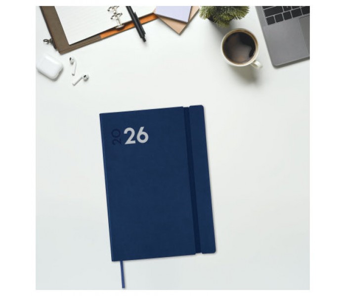 Agenda profesional encuadernada de tapa blanda. Tacto suave muy agradable. Estilo moderno y universal. Perfecta apertura para poder escribir cómodamente. Con goma elástica, cinta punto y esquinas microperforadas para localizar rápidamente el día/semana en curso. Contiene información de interés en la anualidad y otros contenidos extra. Formato similar a DIN A5 con las ventajas de una agenda portable y una de sobremesa. Duración: Enero 2026 - Diciembre 2026 (12 meses). Interior: Semana Vista Vertical. Visión de la semana completa en vertical. Con horas. Con información de los festivos de España. La anualidad contiene: onomástica, festivos nacionales, cambios de estación e inicios de los años nuevos chino, musulmán, ortodoxo y hebreo. Dispone de contenidos extra: datos personales, horarios, fechas para destacar, calendarios, plan anual (2 años), planificación de viajes, festivos nacionales y de las CC. AA., festivos internacionales, usos del teclado, cómo buscar en Google, mapa de Europa y de husos horarios, hojas para anotaciones y tareas, y hojas para teléfonos, direcciones y e-mails. Artículo en español con anualidad multilingüe: español, francés, portugués, euskera e inglés. Formato: Y10 - 140x204 mm. Poliuretano flexible y papel. 80 g/m². Papel FSC®.