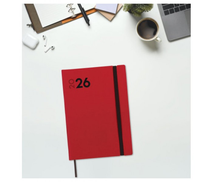 Agenda profesional encuadernada de tapa blanda. Tacto suave muy agradable. Estilo moderno y universal. Perfecta apertura para poder escribir cómodamente. Con goma elástica, cinta punto y esquinas microperforadas para localizar rápidamente el día/semana en curso. Contiene información de interés en la anualidad y otros contenidos extra. Formato similar a DIN A5 con las ventajas de una agenda portable y una de sobremesa. Duración: Enero 2026 - Diciembre 2026 (12 meses). Interior: Semana Vista Vertical. Visión de la semana completa en vertical. Con horas. Con información de los festivos de España. La anualidad contiene: onomástica, festivos nacionales, cambios de estación e inicios de los años nuevos chino, musulmán, ortodoxo y hebreo. Dispone de contenidos extra: datos personales, horarios, fechas para destacar, calendarios, plan anual (2 años), planificación de viajes, festivos nacionales y de las CC. AA., festivos internacionales, usos del teclado, cómo buscar en Google, mapa de Europa y de husos horarios, hojas para anotaciones y tareas, y hojas para teléfonos, direcciones y e-mails. Artículo en español con anualidad multilingüe: español, francés, portugués, euskera e inglés. Formato: Y10 - 140x204 mm. Poliuretano flexible y papel. 80 g/m². Papel FSC®.