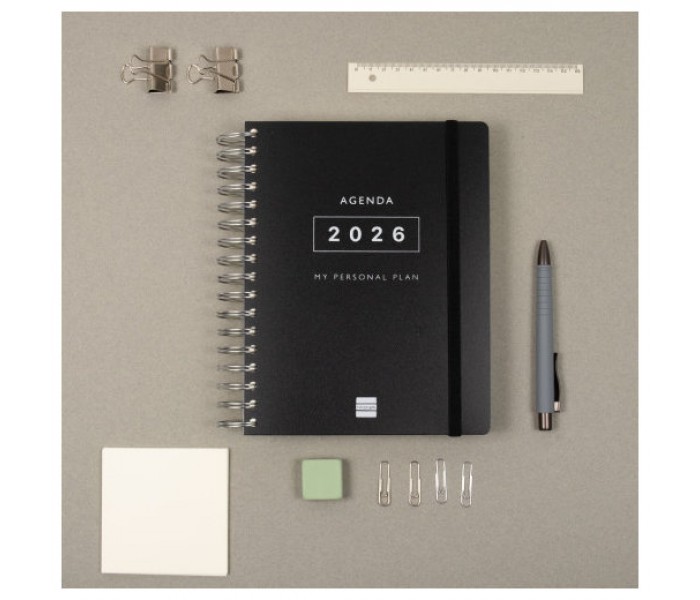 Agenda de tapa extradura de polipropileno, con espiral doble y goma elástica. Con dos cintas punto para poder acceder rápidamente a las secciones que desees. La agenda anual Tempus te ayudará a planificar tus metas, objetivos y compromisos, ya que está diseñada para facilitar la organización diaria del tiempo personal y de trabajo para adaptarse completamente a ti. Al inicio dispondrás de un apartado introductorio donde se detalla cómo usarla para sacarle el máximo partido un tutorial con recomendaciones útiles de organización personal. Cuenta con información de interés en la anualidad, muchos contenidos orientados a la planificación del tiempo y muchas hojas libres para que asignes los temas de tu interés. En el apartado de Descargas de la web Finocam podrás personalizarte tu agenda con contenidos especiales. Además, viene con listas microperforadas para arrancar, adhesivos temáticos, una funda y un set de notas engomadas. Da la bienvenida a tu nueva vida, mucho más tranquila, organizada y feliz, porque a pesar de vivir en la multitarea es importante priorizar las cosas y llegar a todo sin estrés. ¡Tu futuro depende de lo que hagas hoy! Formato similar a DIN A5 con las ventajas de una agenda portable y una de sobremesa. Duración: Enero 2026 - Diciembre 2026 (12 meses). Interior: 1 Día Página. Amplio espacio de escritura para cada día. Una columna para los compromisos asociados a una hora específica, y otra para asignar los objetivos que te hayas propuesto cumplir durante la jornada. Con información de los festivos de España. La anualidad de la agenda contiene: onomástica, festivos nacionales e internacionales, cambios de estación e inicios del nuevo año chino, musulmán, ortodoxo y hebreo. Con pestañas troquelada y espacio para notas en cada trimestre. Otros contenidos extra: datos personales, tutorial de My Personal Plan con consejos de organización, calendarios, festivos internacionales, códigos de países, fechas para recordar, horarios, planificación anual en columnas (2 años), planificación mensual cuadriculada (12 meses), hojas para anotaciones y tareas, listas microperforadas para arrancar, adhesivos temáticos, funda transparente y set de notas engomadas. Artículo en español con anualidad multilingüe: español, euskera, gallego y catalán. Formato: 4º - 155x217 mm. Tapas de polipropileno, espiral doble metálica y papel. 80 g/m². Papel FSC®.
