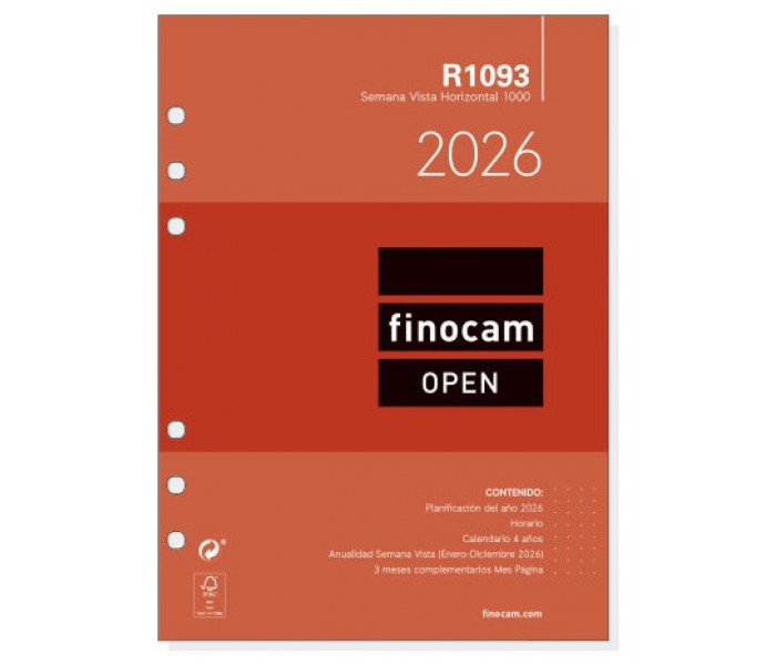 RECAMBIO ANUAL 2026 R1093 OPEN1000 155X215MM SEMANA VISTA HORIZONTAL FINOCAM 711590026 (Espera 4 dias)