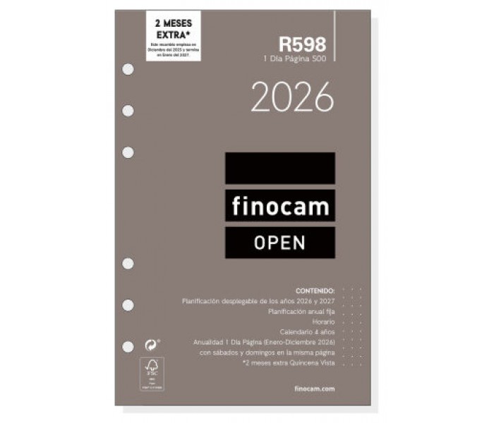 RECAMBIO ANUAL 2026 R598 OPEN500 117X181MM DIA PAGINA FINOCAM 711670026 (Espera 4 dias)
