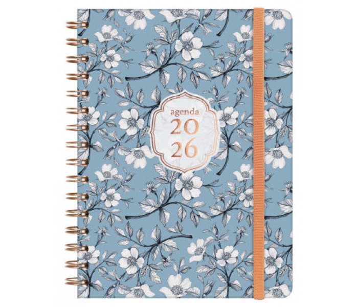 Agenda de espiral con tapa dura de cartón forrado con peliculado mate antirrayaduras. Diseño elegante y en tendencia con detalles estampados metalizados. Ideal para uso personal y/o profesional. Con goma elástica y esquinas microperforadas para localizar rápidamente el día/semana en curso. El diseño interior es limpio y fácil, con espacio suficiente para organizar tus proyectos, tareas y compromisos. Contiene información de interés en la anualidad y otros extra para la organización personal. Además, incorpora un set de adhesivos temáticos. Formato similar a DIN A5 con las ventajas de una agenda portable y una de sobremesa. Duración: Enero 2026 - Diciembre 2026 (12 meses). Interior: Semana Vista Horizontal. Visión de la semana completa en horizontal que permite la escritura natural. Con espacio para concretar horario. Con información de los festivos de España. La anualidad de la agenda incluye la información relativa a: onomástica, festivos nacionales, cambios de estación e inicios de los años nuevos chino, musulmán, ortodoxo y hebreo. La agenda dispone también de otros contenidos extra: datos personales, calendarios, horarios, objetivos del año, plan anual, fechas importantes, otras fechas, hojas para checklist, hojas para notas, hoja para ocio, hojas para teléfonos, direcciones y e-mails y dos hojas de pegatinas orientadas a la organización personal. Artículo en español con anualidad multilingüe: español, euskera, gallego y catalán. Formato: E10 - 155x212 mm. Tapas de cartón forrado con peliculado mate antirrayaduras. Espiral doble metálica. Papel. 80 g/m². Papel FSC®.