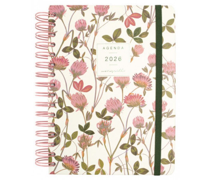 Agenda de tapa dura de cartón forrado con peliculado mate antirrayaduras. Con espiral doble, goma elástica y esquinas microperforadas para localizar rápidamente el día/semana en curso. Esta agenda se ha creado en colaboración con la diseñadora e ilustradora Moniquilla, obteniendo unas agendas bonitas y funcionales. Con una estética limpia y minimalista, contiene información de interés en la anualidad y otros contenidos extra. Además, dispone de dos marcapáginas y de adhesivos temáticos orientados a la organización personal. Formato similar a DIN A5 con las ventajas de una agenda portable y una de sobremesa. Duración: Enero 2026 - Diciembre 2026 (12 meses). Interior: 1 Día Página. Amplio espacio de escritura para cada día. Dos líneas por hora. Con espacio en el lateral derecho para anotar las tareas del día no asociadas a una hora en concreto. Con planificación mensual cuadriculada al inicio de cada mes.Con información de los festivos de España. La anualidad de la agenda incluye: festivos nacionales, cambios de estación y días señalados. Contiene planificación mensual cuadriculada con las fases lunares intercalada en la anualidad. La agenda también dispone de otros contenidos extra: datos personales, calendarios, planificación anual en columnas, horarios, objetivos personales, planes, maleta, apartado para libros/películas/series/pódcast, hojas para anotaciones y tareas, contactos, adhesivos temáticos y dos marcapáginas. Idioma del artículo: español. Formato: E10 - 155x212 mm. Tapas de cartón forrado con peliculado mate antirrayaduras. Espiral doble metálica. Papel. 80 g/m². Papel FSC®.