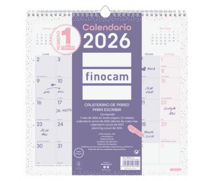 CALENDARIO 2026 PARED TRENDY CHIC ESCRIBIR 300X300MM MORADO FINOCAM 787002726 (Espera 4 dias)