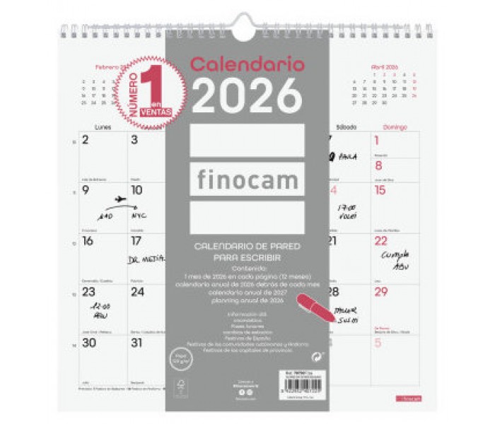 CALENDARIO 2026 PARED TRENDY CHIC ESCRIBIR 300X300MM BLANCO FINOCAM 787007326 (Espera 4 dias)