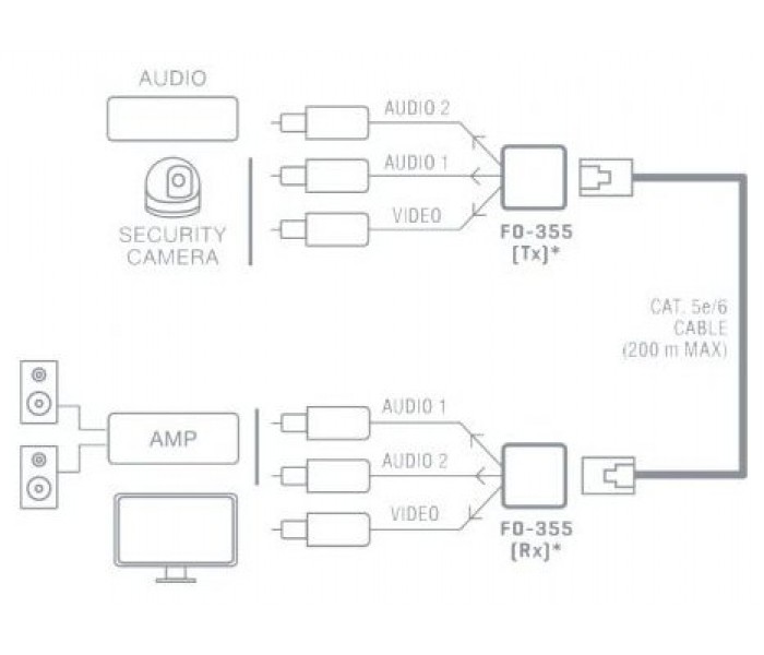 Transmite señal de audio y vídeo a grandes distancias (hasta 200 m), sin necesidad de alimentación, a través de un único cable Cat 5e/6.