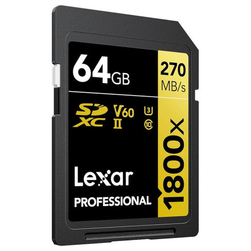 LEXAR 64GB PROFESSIONAL 1800X SDXC UHS-II CARDS, UP TO 280MB/S READ 210MB/S WRITE C10 V60 U3