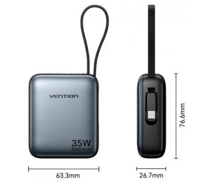 El cable USB-C incorporado y el puerto USB-C admiten carga rápida 35W PD y PPS, ideal para portátiles, tabletas y teléfonos.