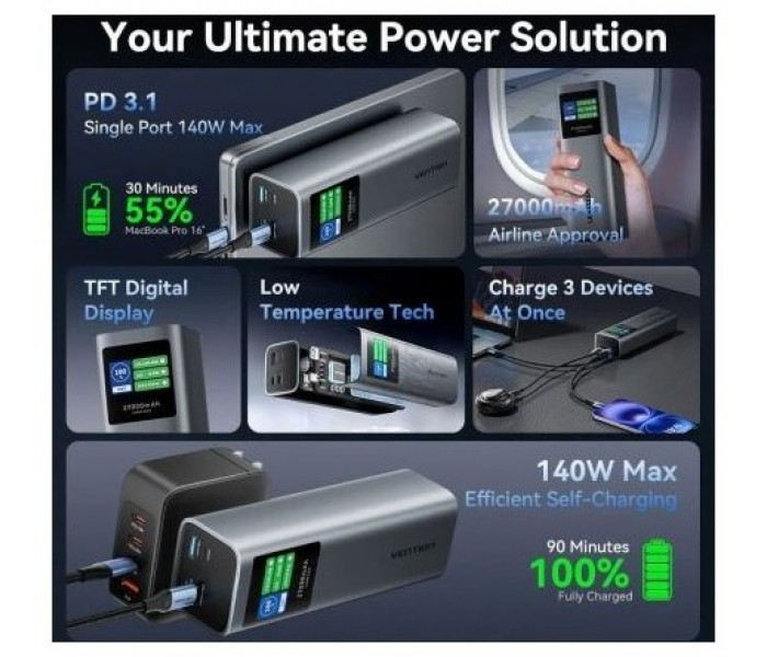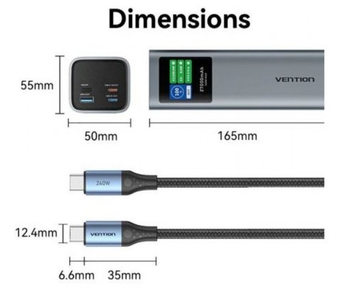 Powerbank 27000mAh Vention FKEH0/ 140W/ Gris