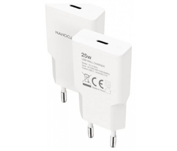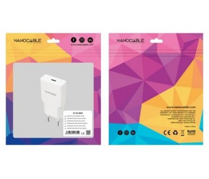 Cargador de Pared Nanocable 10.10.2024/ 1xUSB Tipo-C/ 25W/ Blanco
