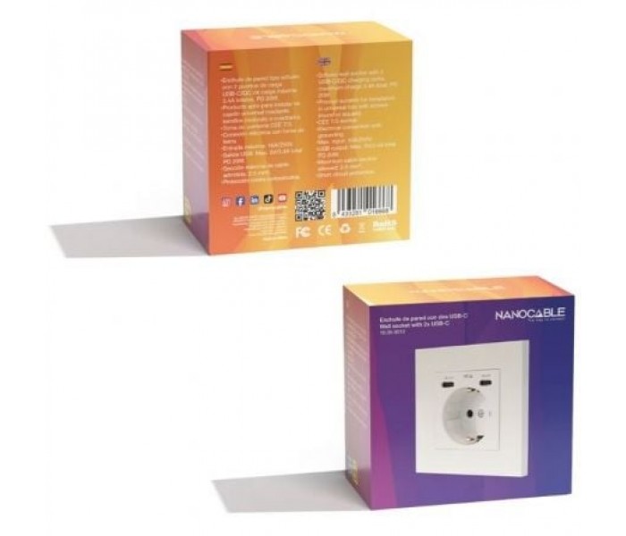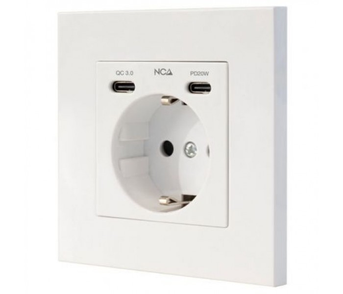 Base de enchufe de pared tipo schuko con 2 tomas USB-C, QC 3.0 y PD 20W