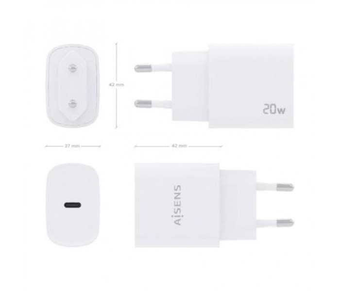 Cargador de Pared Aisens A110-0752/ 1xUSB Tipo-C/ 20W